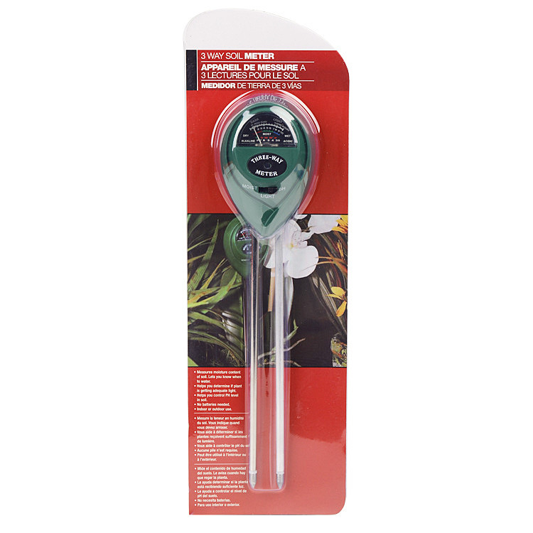 Simply insert the meter into the soil, switch to the setting you want to measure, and read the scale.