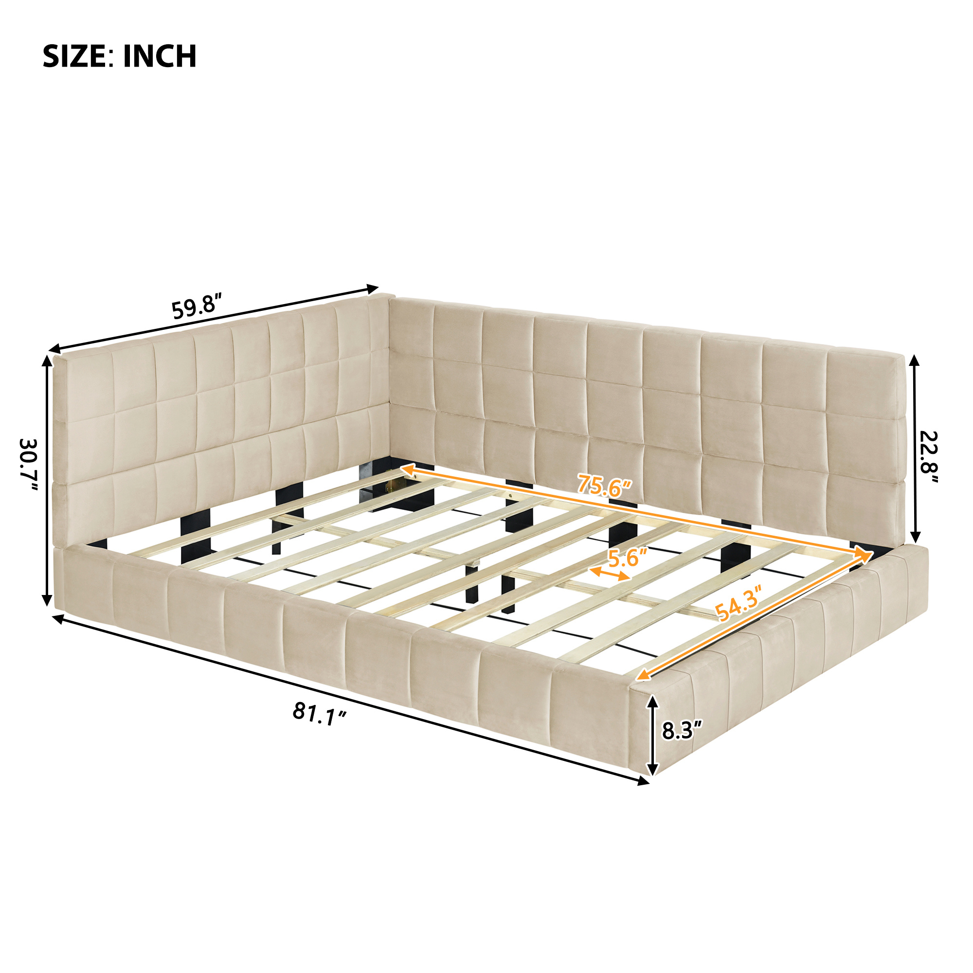 Full-size Upholstered Sofa Bed, Sofa Bed Frame – Beige, Velvet