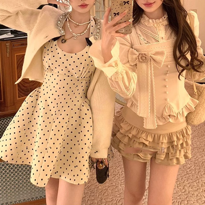 Color: Champagne apricot, medieval polka dots, gold-plated Orange