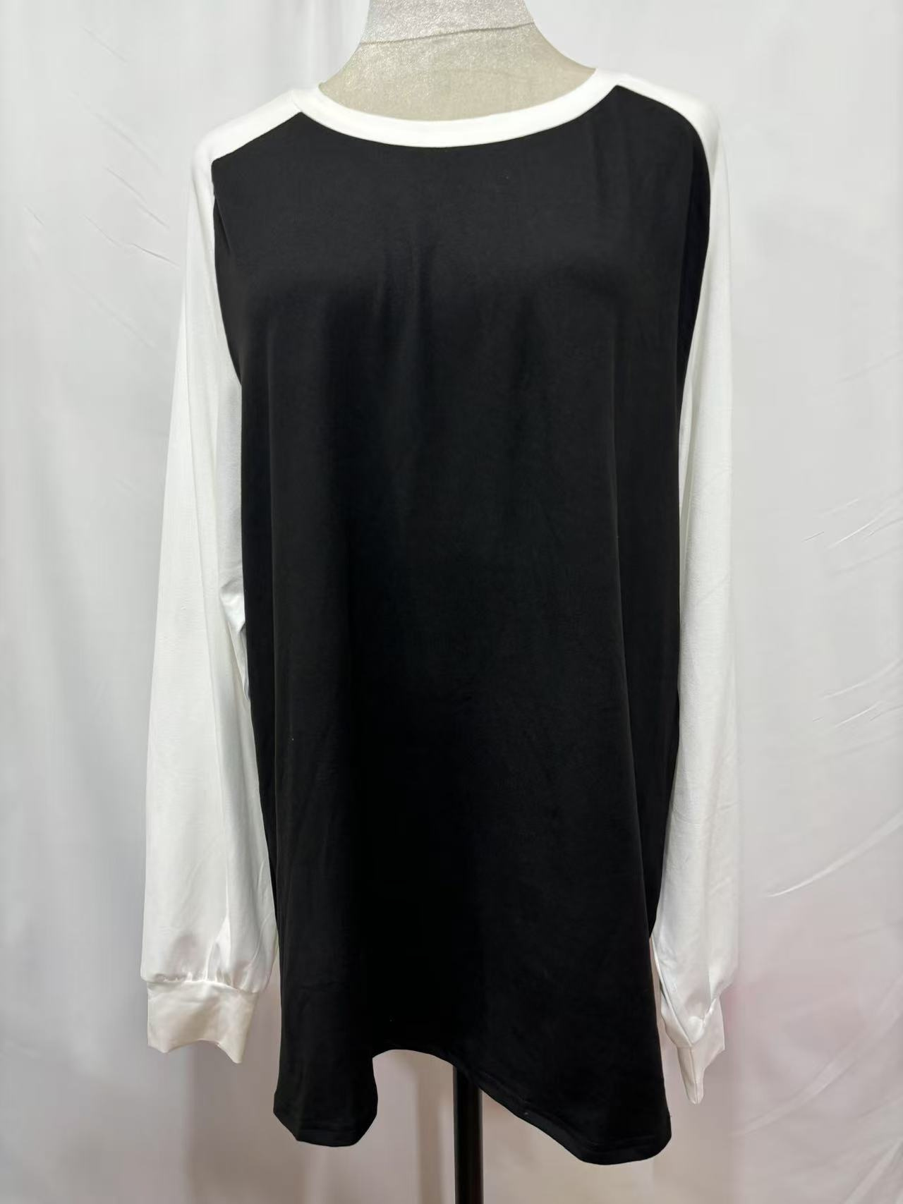 Long Sleeve Color Matching Casual All-match Round Neck T-shirt