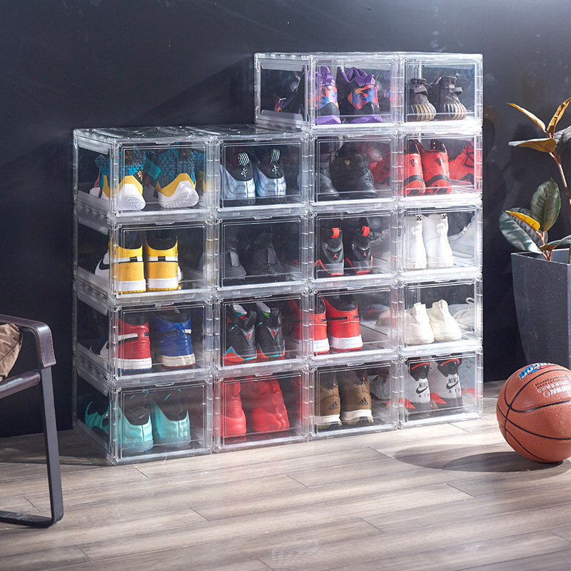 Magnetic High-Top Basketball Shoe Box Moisture-Proof And Fust-Proof Plastic Acrylic Transparent Storage Shoe Box 7-12 days shipping