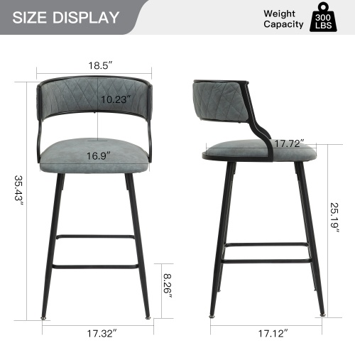 SET OF 2, 26 Counter Height Bar Stools PU Cover Kitchen Island Counter Bar Stool With Black Powder Coating Base And Footrest only deliver united state & alemania