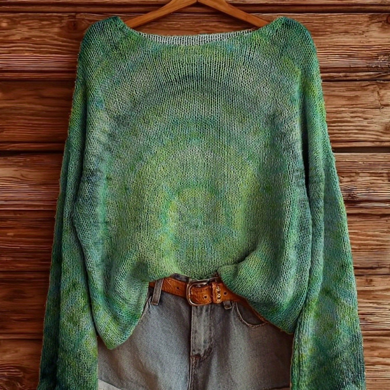 Women’s Casual Sweater – Long Sleeve Pullover Sweater, All-Green Rendering, Loose And Elegant Sweater